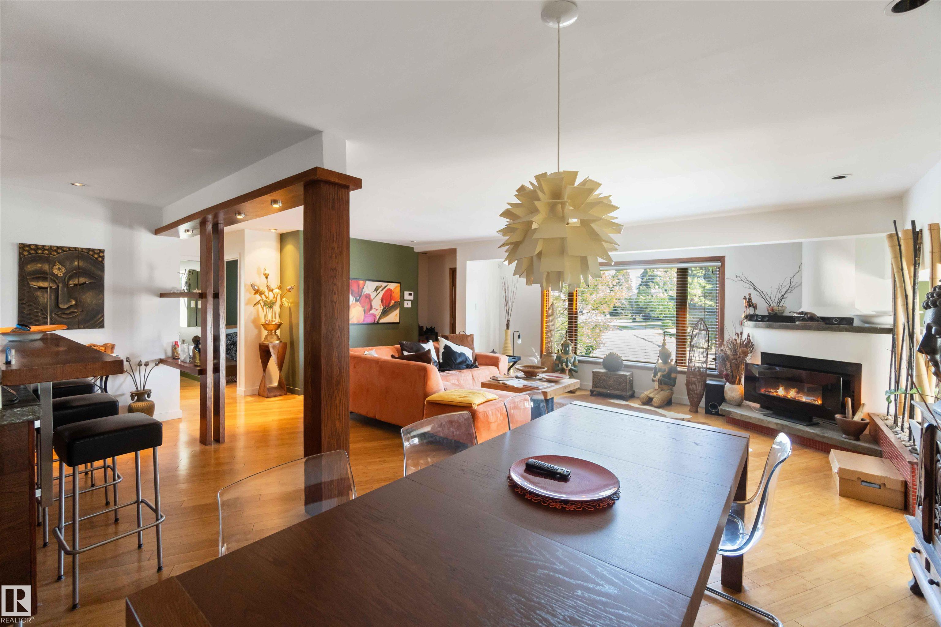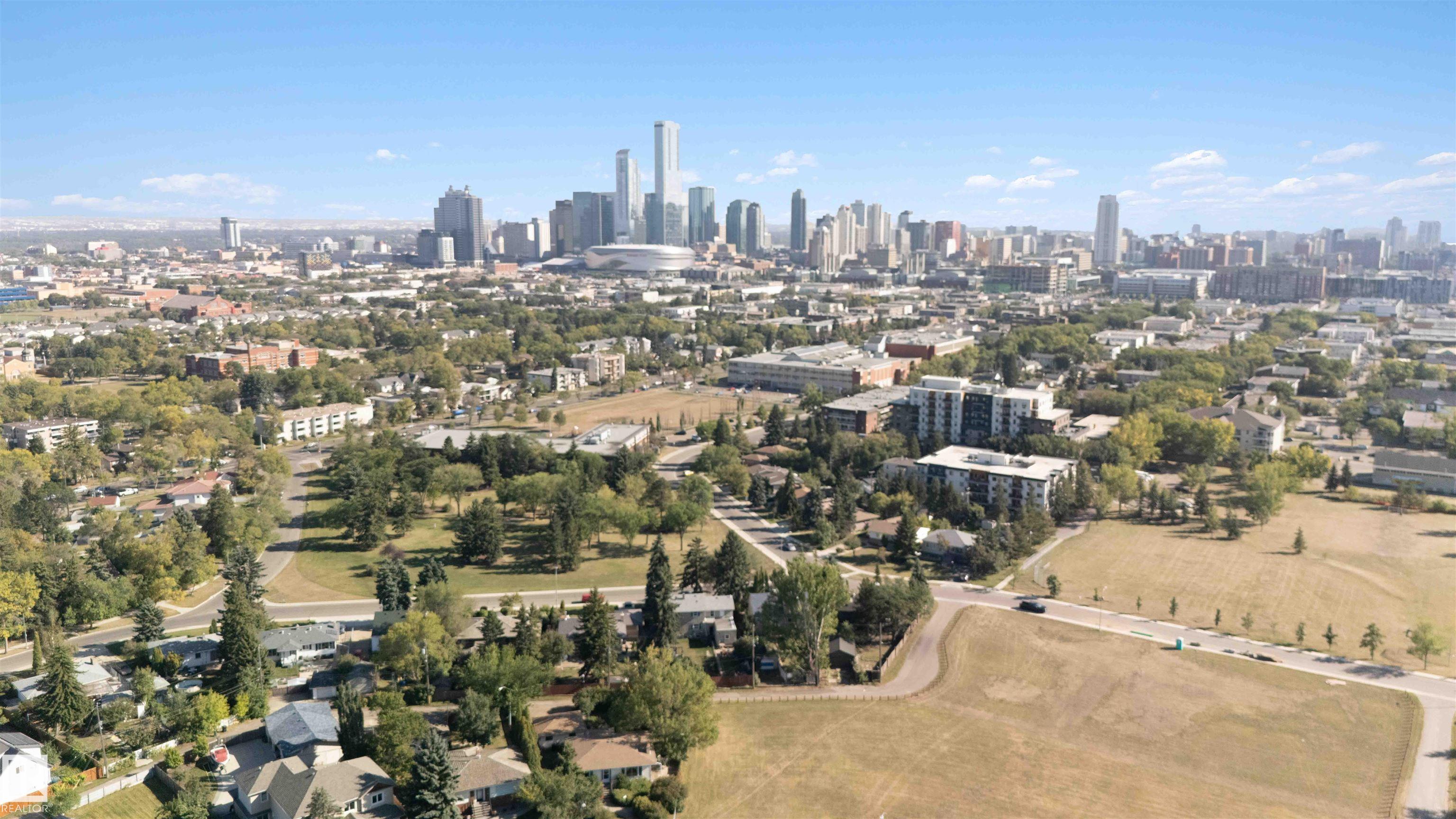 UPDATED BUNGALOW ON A LARGE PIE-SHAPED CORNER LOT (7,285 sq.ft.) in Queen Mary Park—steps from NAIT, Kingsway Mall, Grant MacEwan, Downtown, and adjacent to three green spaces/parks. This unique home has a tower attachment to the main bungalow. The main floor features bamboo flooring, two bedrooms, a bathroom with a jacuzzi tub, and an open-beam kitchen with modern lighting and concrete countertops. Additional highlights include a stone fireplace, water heating system, and a green room with heated floors.Th...