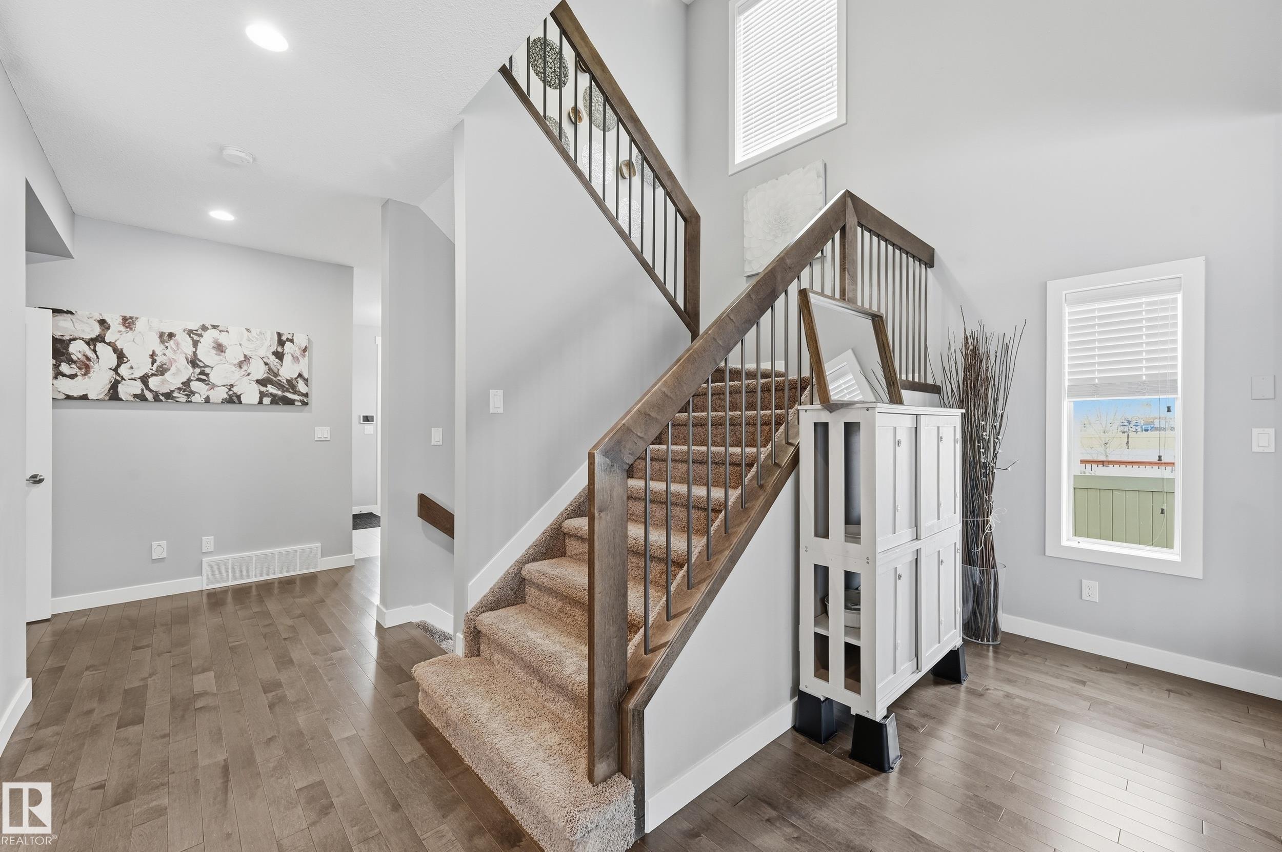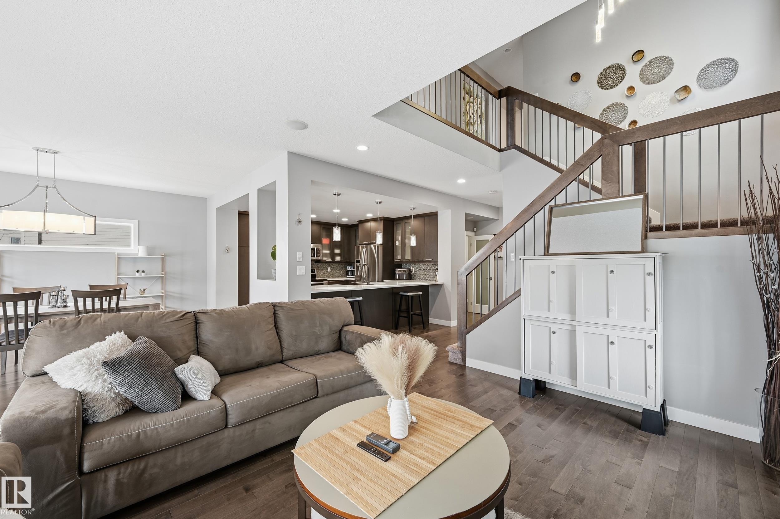 Welcome to this exceptional custom built two storey, showcasing extensive upgrades in the family friendly community of Secord. The main floor offers a sleek open concept design anchored by a chef inspired kitchen with quartz countertops, stainless steel appliances, oversized island with seating, and abundant storage. The dinette opens to a massive pie lot featuring a two tier, no maintenance deck with custom glass railings perfect for entertaining. The living room impresses with soaring ceilings, expansive...