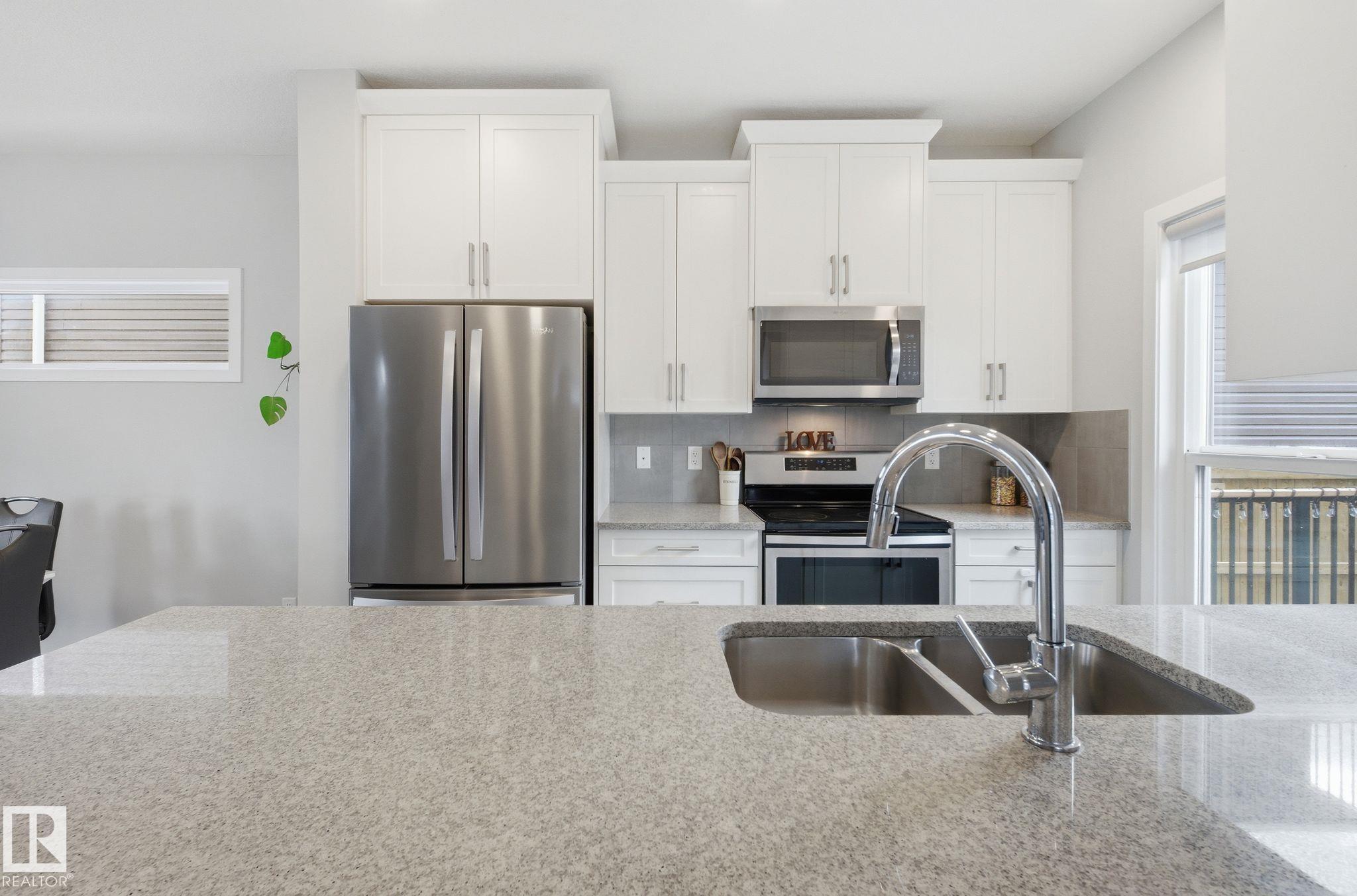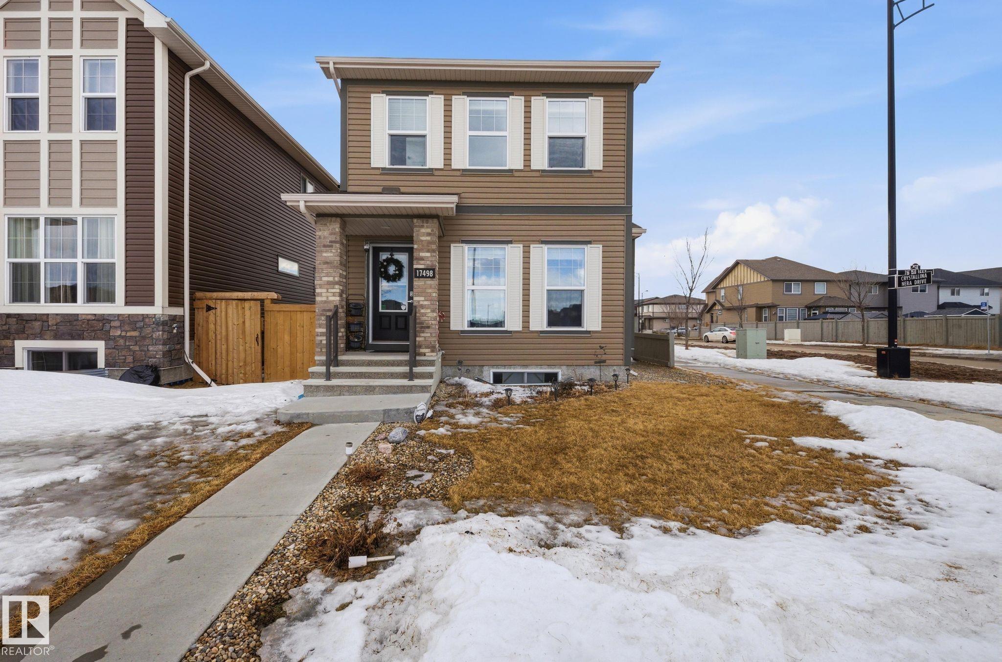 Welcome to Crystallina, a growing North Edmonton community. Situated on a rare non-zero lot line corner lot and the only single detached home on the lane, this property offers added space, privacy, and standout curb appeal. This 3-bedroom, 2.5-bathroom home features bright open-concept main floor with large windows that fill the home with natural light, creating a warm and inviting atmosphere. The kitchen is both functional and stylish, complete with granite countertops, ample cabinetry, and generous prep s...