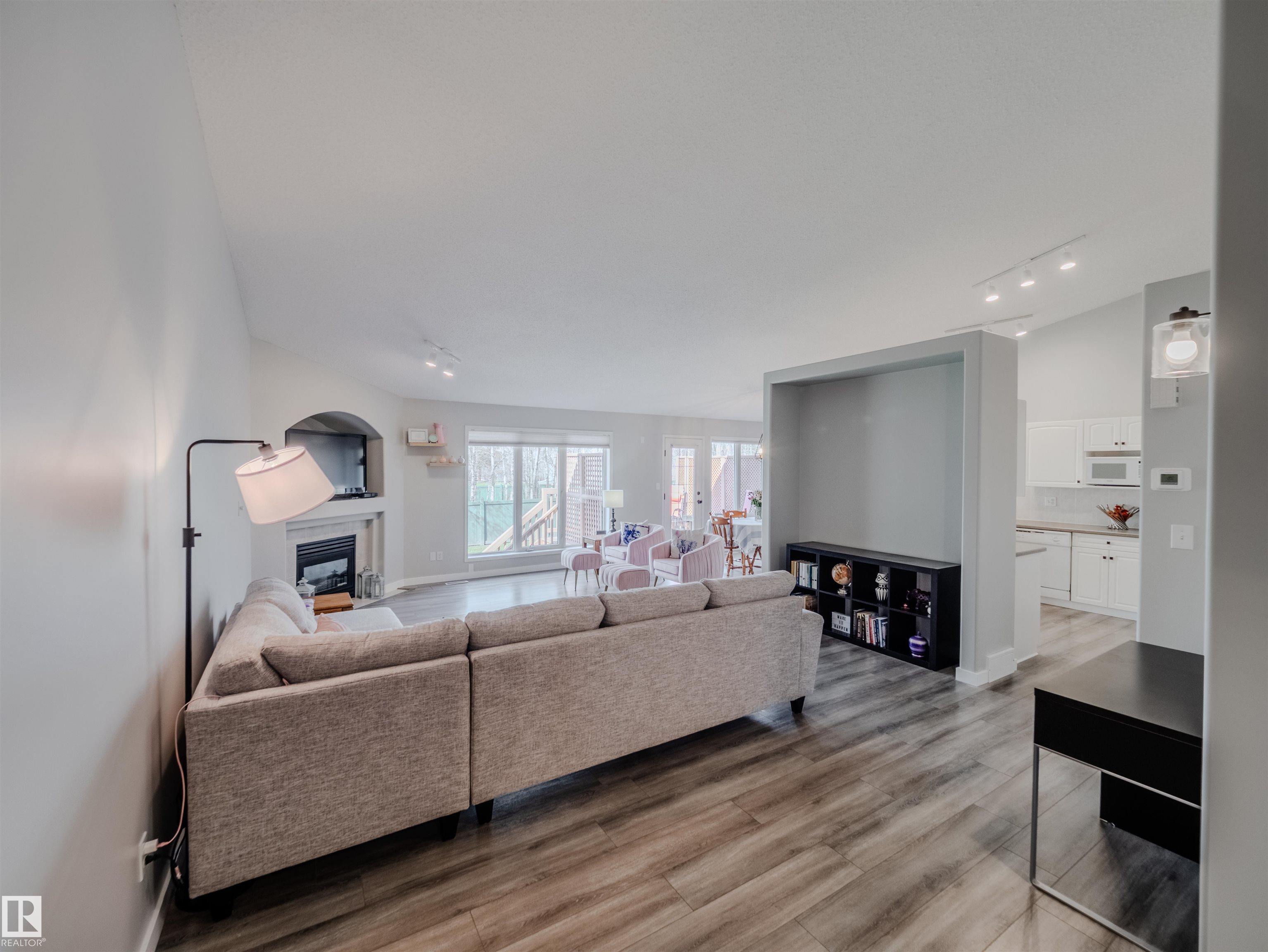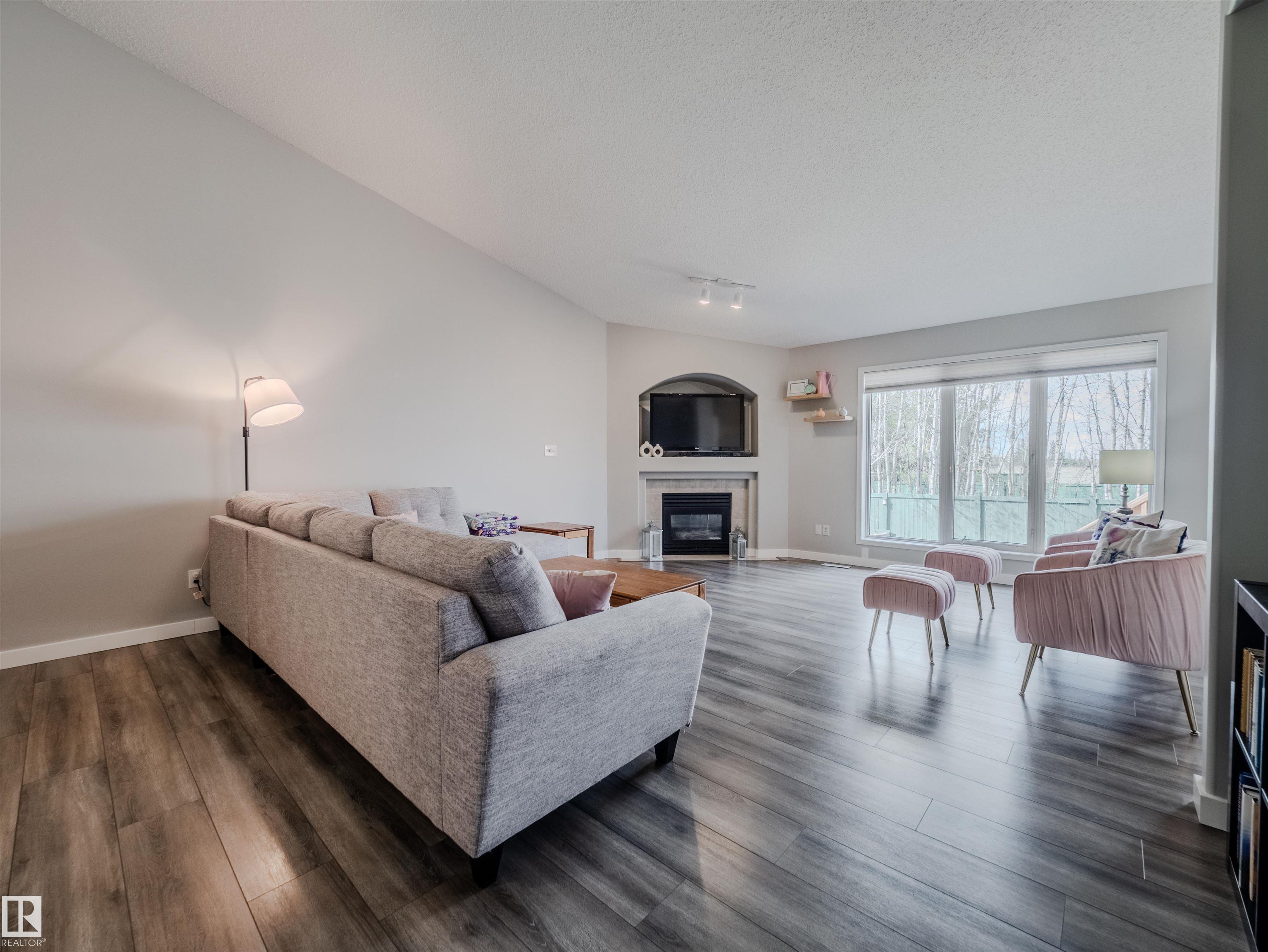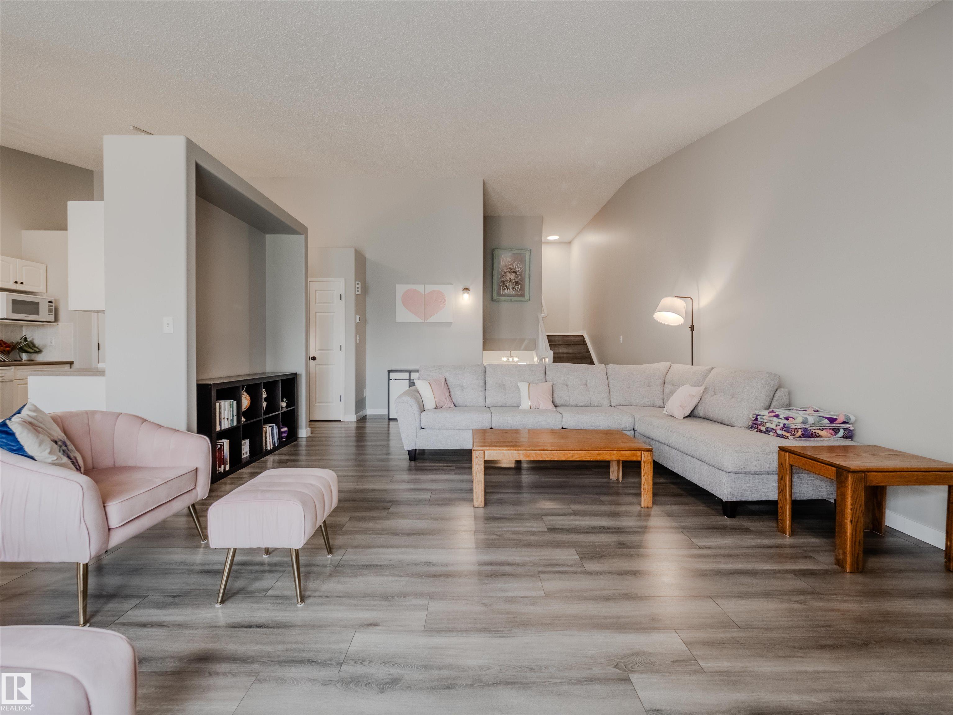 Welcome to this beautifully updated 1323 sq ft 3-level split, nestled steps from scenic BLACKMUD CREEK and backing onto a tranquil GREEN BELT. The main floor boasts vaulted ceilings, durable laminate flooring, and an open-concept layout that flows seamlessly from the living room complete with a cozy gas fireplace into the dining area. The kitchen features a PANTRY and plenty of prep space. Upstairs offers 2 spacious bedrooms, including a primary with a 4-piece ensuite and luxurious JACUZZI TUB, plus the con...
