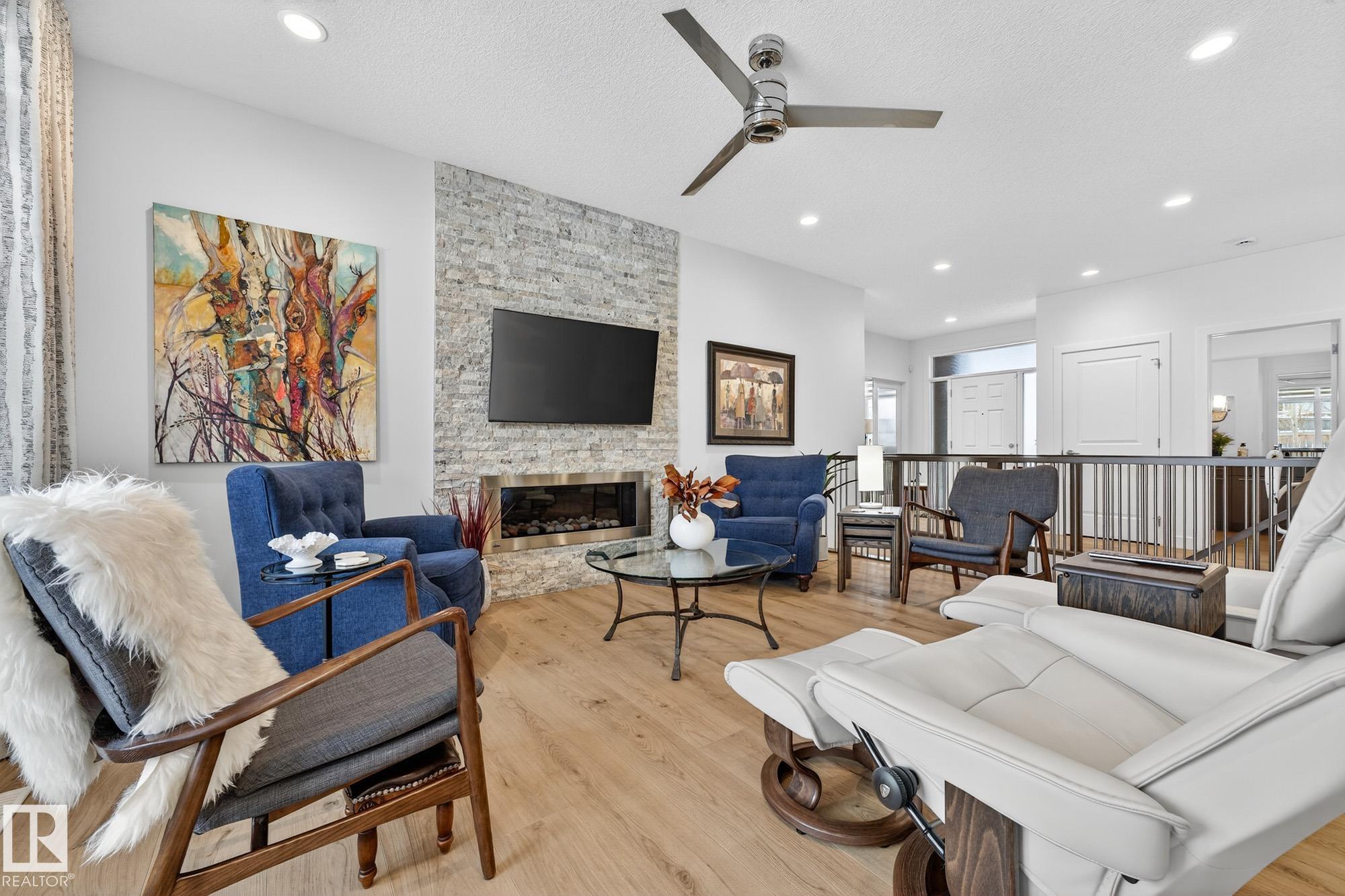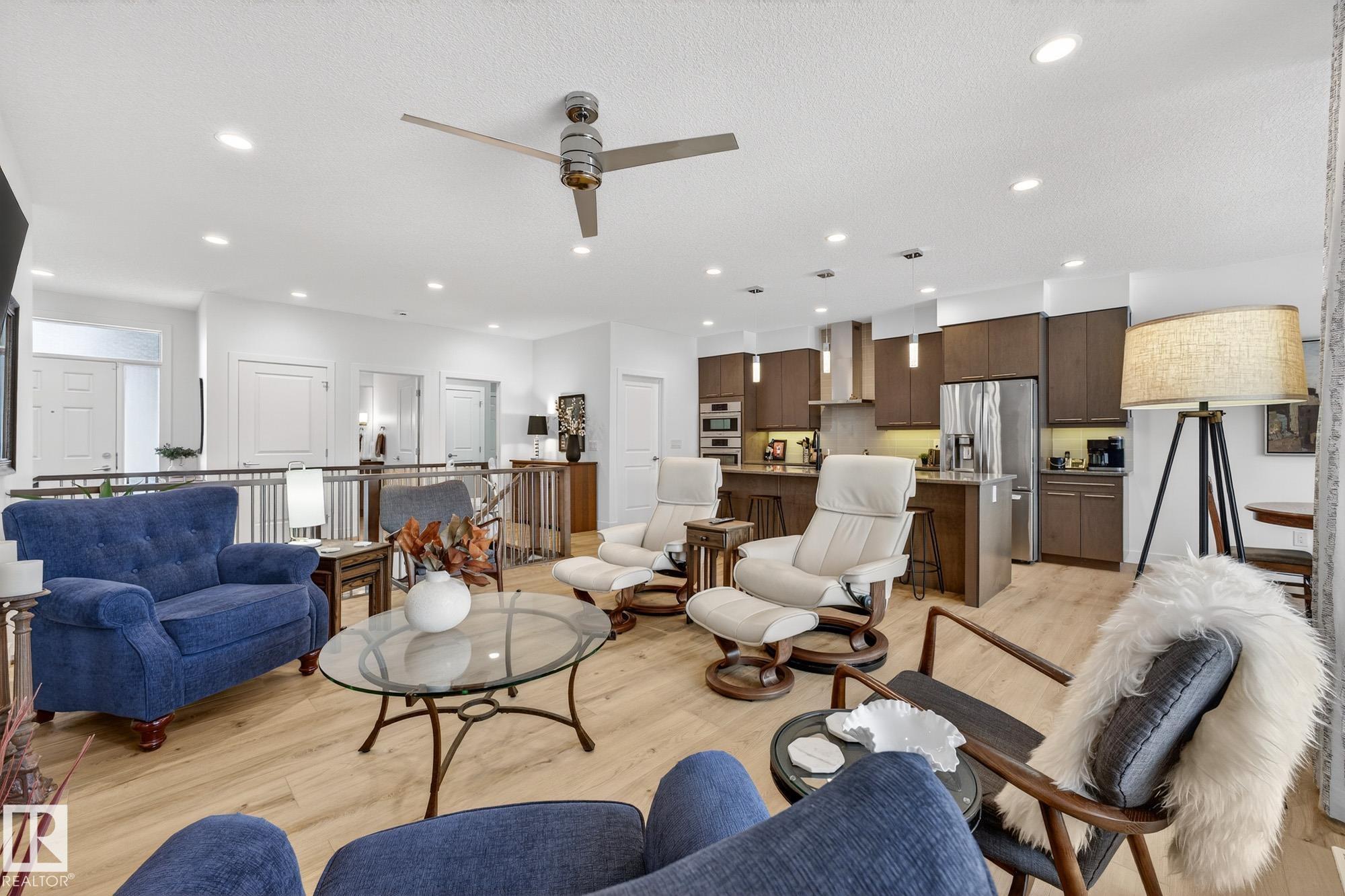 Executive bungalow in the Estates of Trumpeter, custom built by Fekete Homes and finished with exceptional attention to detail. Features include 9’ ceilings, pot lighting, upgraded carpet, and recently installed premium vinyl plank flooring. Bright open-concept great room with Napoleon gas fireplace and main floor den. Gourmet kitchen offers professional series appliances, induction cooktop, maple soft-close cabinetry, quartz countertops, large island, and walk-through pantry. Primary suite includes spa-ins...