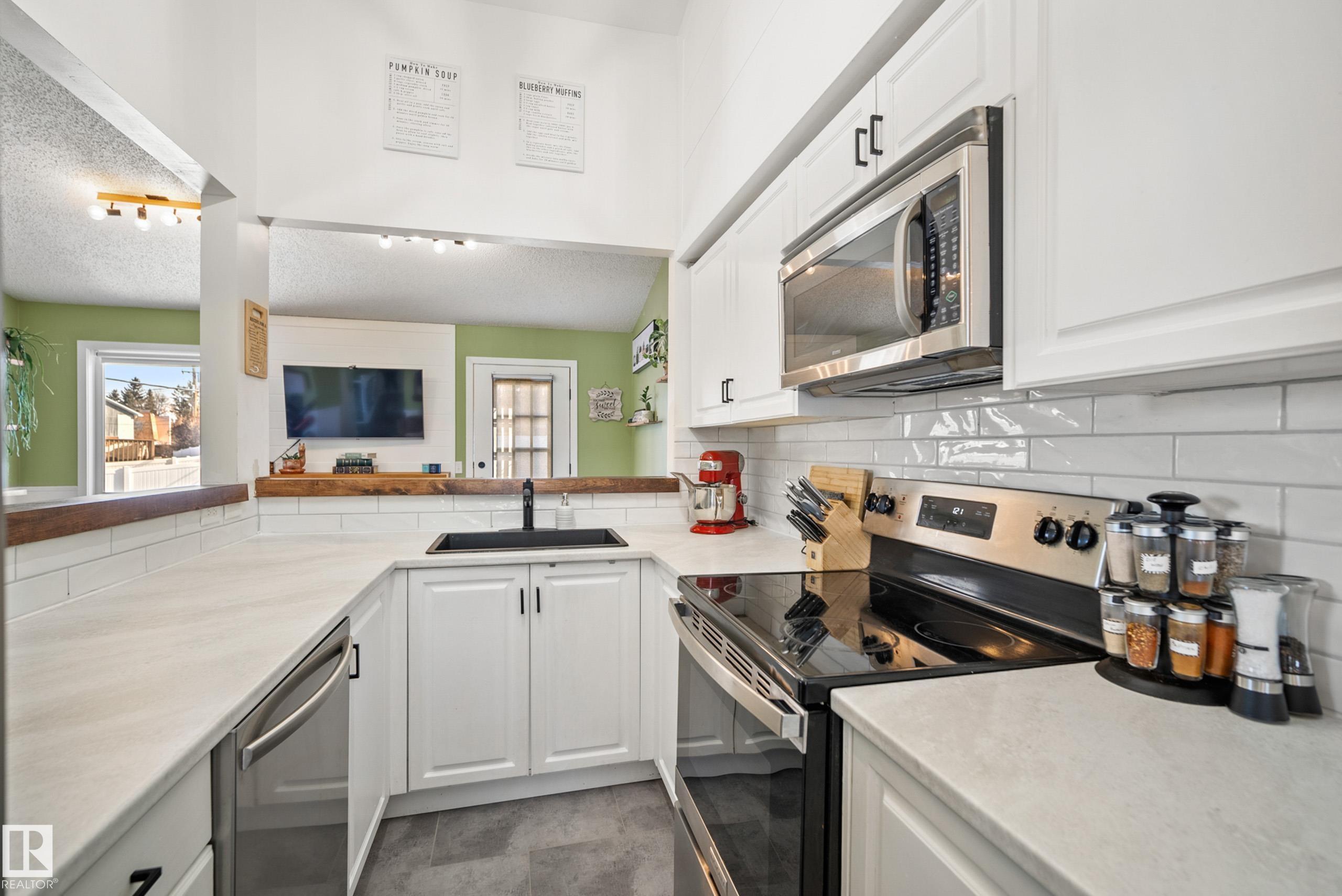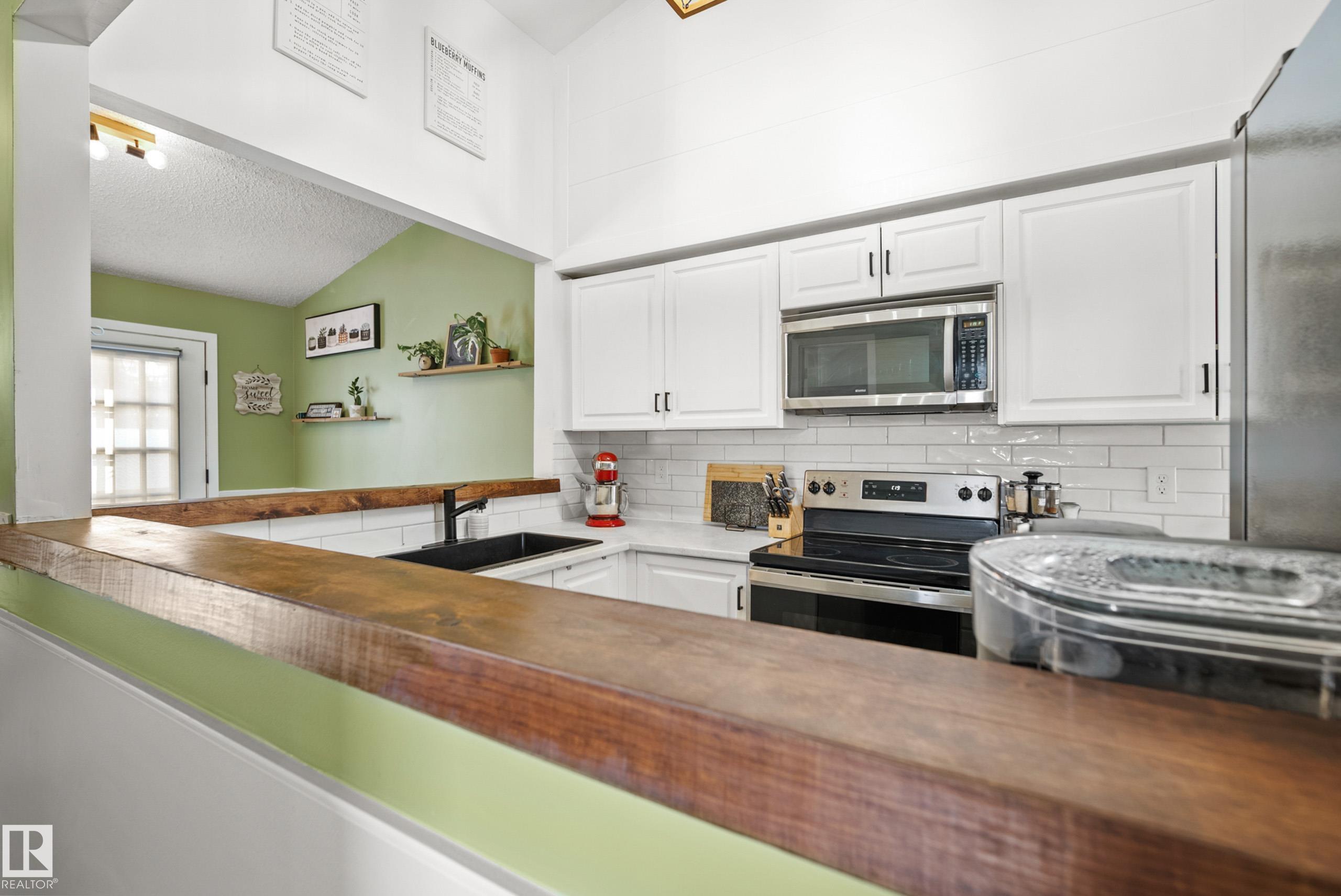 Beautifully updated END UNIT condo in the heart of Sherwood Park’s sought-after Summa Glen complex. This bright and welcoming home features 2 bedrooms and 1.5 baths with a spacious open design and stylish updates throughout. The modernized kitchen showcases crisp white cabinetry, stainless steel appliances, updated counters and subway tile backsplash, all overlooking the dining area and living space. The family sized living room offers vaulted ceilings, large windows for incredible natural light, a cozy fir...