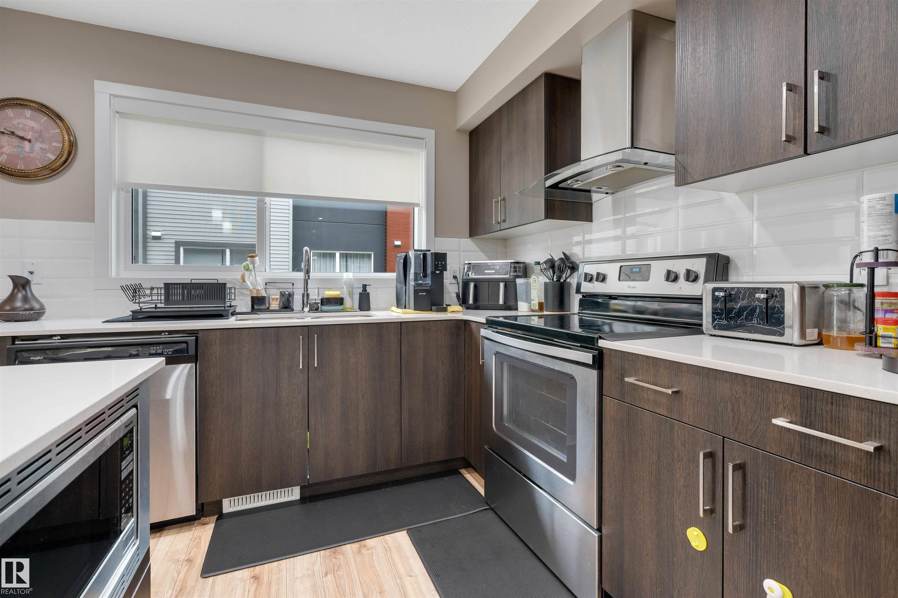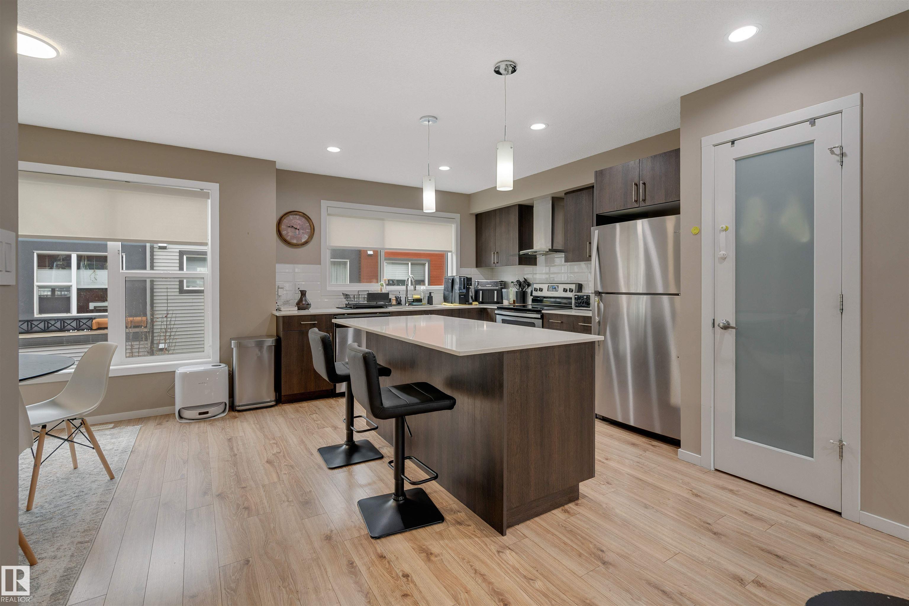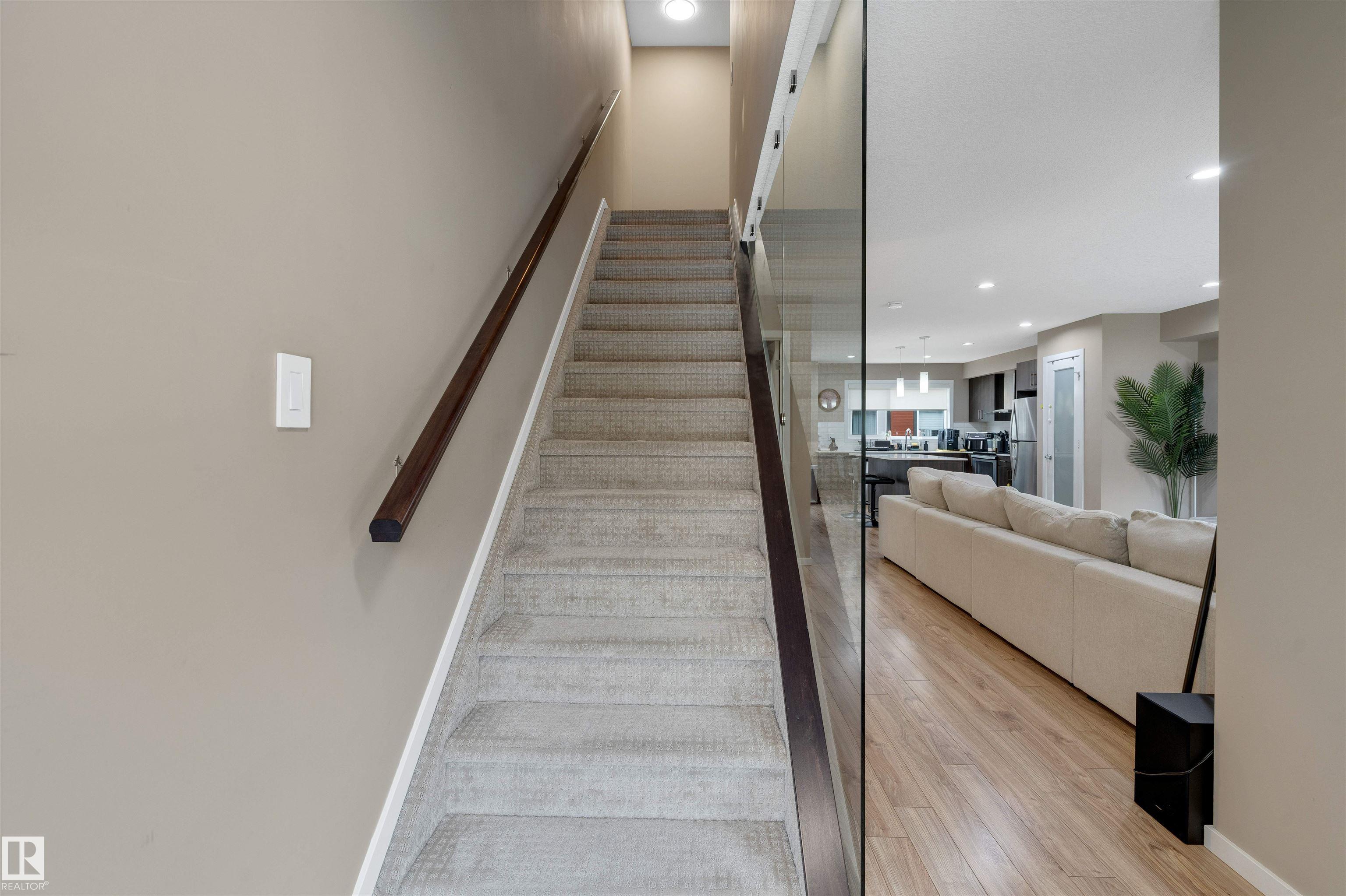 Welcome to The Strand in Rosenthal—a move-in ready 3 bed, 2.5 bath 3-Storey townhome in a prime west Edmonton location, steps from parks, fountains, walking trails, playground and the Rosenthal spray park. Perfect for families or professionals seeking low-maintenance living. The entry level features a versatile FLEX ROOM ideal for a home office, gym or additional living space, along with laundry and access to the OVERSIZED DOUBLE attached garage. Up the stairs, a stunning GLASS FEATURE WALL accentuates the ...