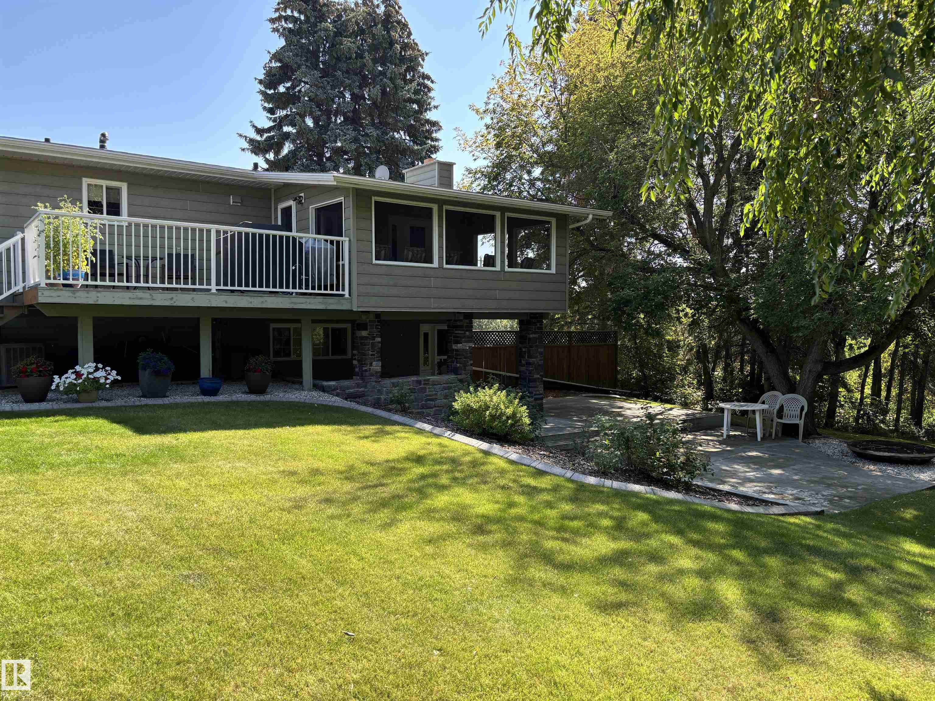 This exceptionally well-maintained bi-level home offers approximately 2300 sq ft of living space situated on 3 manicured lots. With a full main floor and exterior renovation in 2011, the home features 3 bedrooms (2 up, 1 down) and 3 full baths. The spacious primary bedroom boasts a walk-in closet and large ensuite w/ jetted tub. The kitchen has upgraded cabinets, appliances, and quartz countertops. Exit the kitchen to the back and enjoy your cozy sunroom and open deck w/ gas bbq hookup. The fully developed ...
