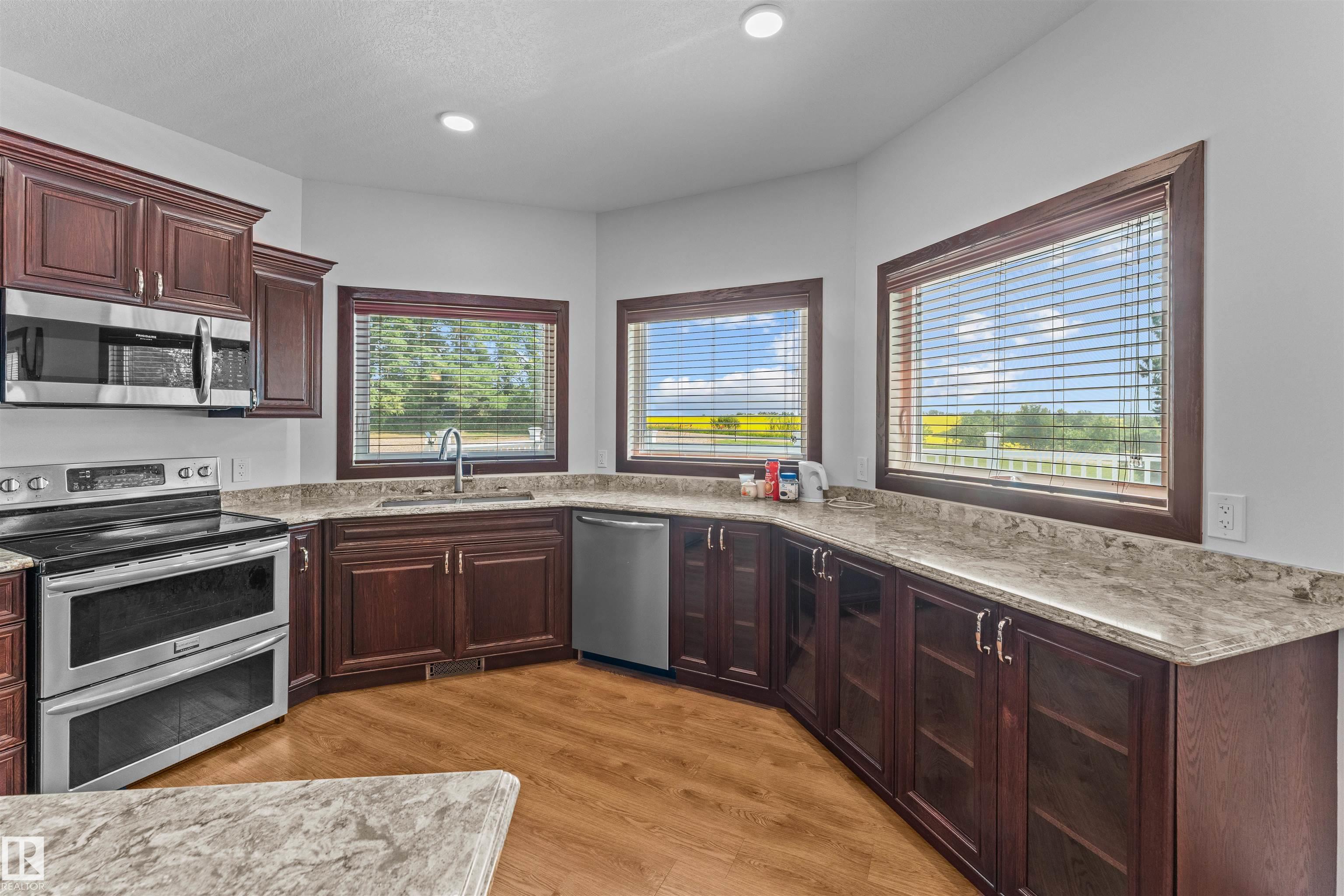 Build a legacy starting here, with 160 acres of rich prairie land in Two Hills County. Before exploring the sprawling yellow crops and green pasture, step inside the pure luxury of this custom bungalow. Whether its the dream kitchen with massive pantry, secluded patio with hot tub, or 4 massive bedrooms and bathrooms, you'll see craftsmanship throughout the almost 5000sqft living space. That attention to detail continues into the oversized garage with in floor heating as well as the expansive basement where...