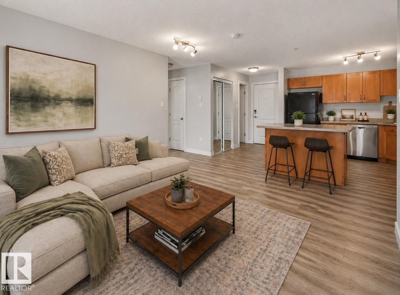 Welcome to this stylish 2-bedroom, 2-bath condo in Park Place South Terwillegar. Designed with an open-concept layout, this home features durable vinyl plank flooring, sleek appliances, warm wood cabinetry, and a functional eat-up island - perfect for entertaining. The bright living room opens onto a west-facing balcony, ideal for enjoying beautiful sunsets. The spacious primary bedroom includes a walk-through closet and a 4pc ensuite. A second bedroom and main 4pc bath are thoughtfully located on the oppos...