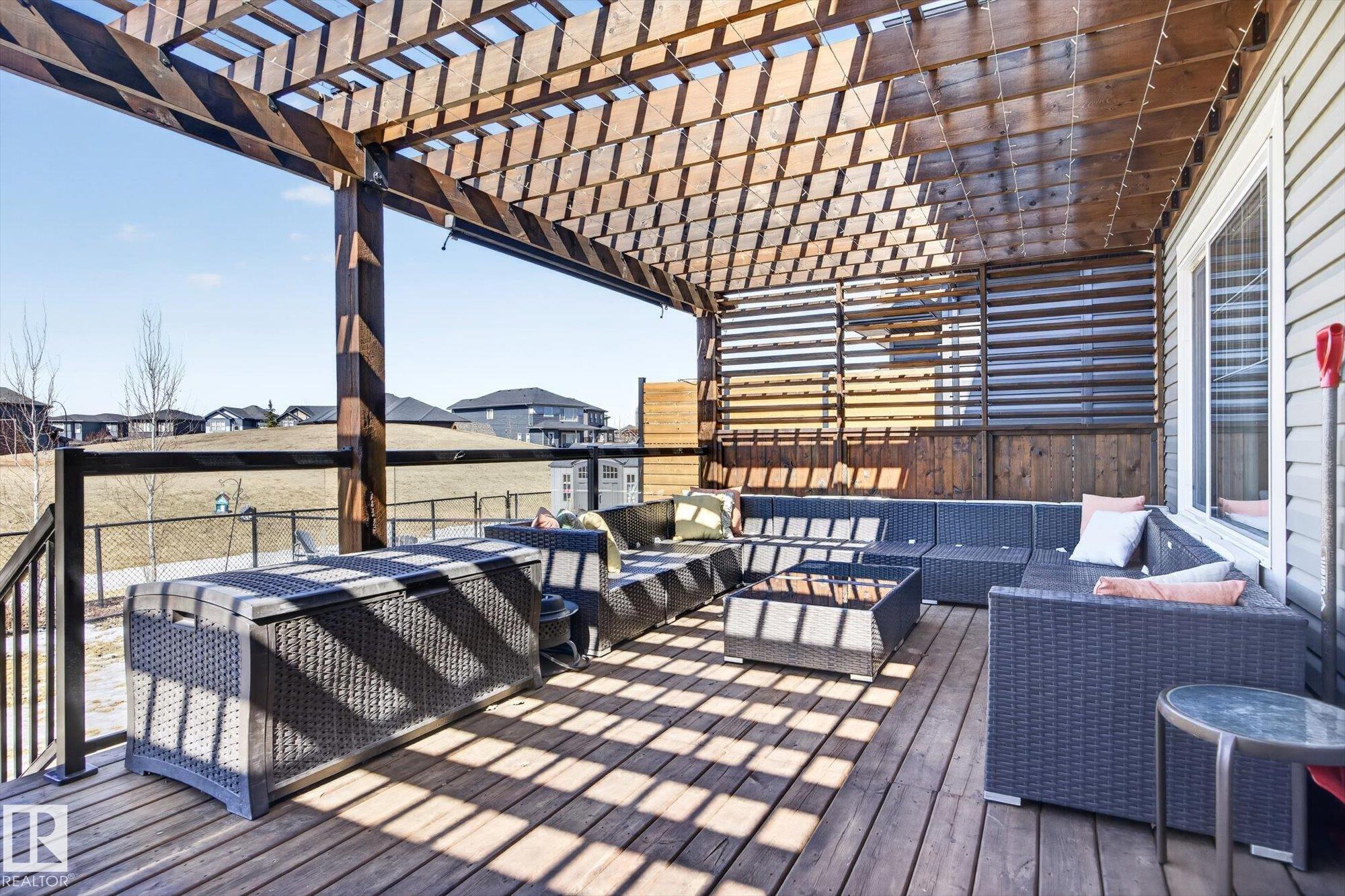 From the welcoming front entry, this well-maintained, DESIGNER-INSPIRED FAMILY home offers comfort and functionality throughout. The main floor features a bright, OPEN-CONCEPT living space anchored by a cozy GAS FIREPLACE. The living area flows seamlessly into the SPACIOUS kitchen, which offers excellent counter & storage space along with pleasant views. The adjoining dining area opens onto a large deck featuring a PERGOLA and privacy side blinds, creating an ideal outdoor retreat - beautiful landscaping &...